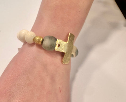 Gold Cross & Blue Glass Bracelet