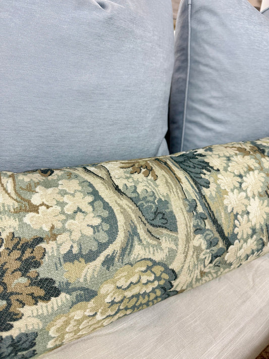 Green & Pink Floral Lumbar Pillow 14"x36"