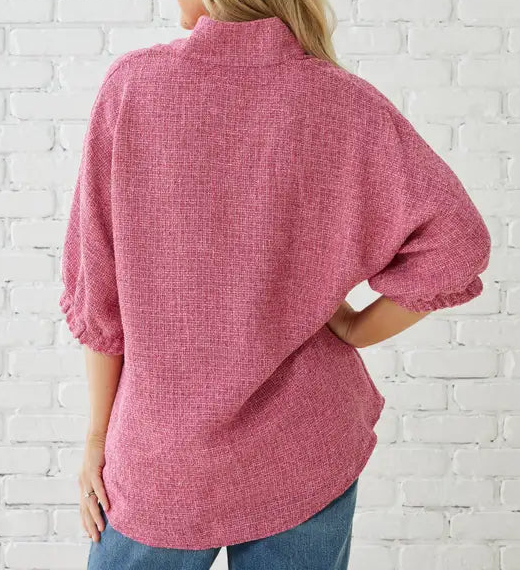 Betsy Collar Tweed Top Pink