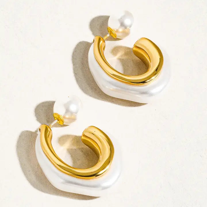 18k Gold & Pearl C-Hoop Earrings