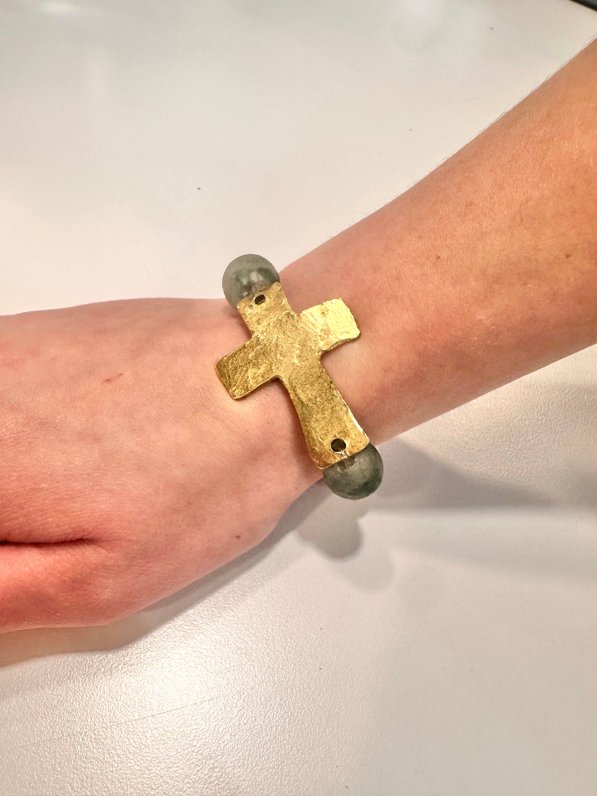 Gold Cross & Blue Glass Bracelet