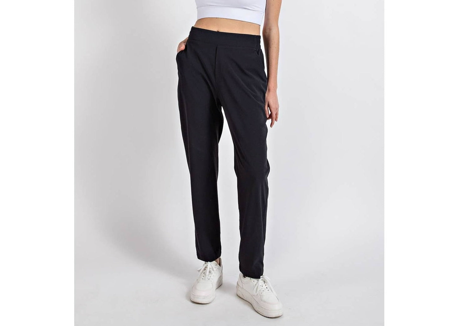 Plus/Curvy - Crinkle Woven Fabric - Casual Pants - Side Pockets - Back Pockets with Zipper - Elastic Waist Banded - Bottom Banded Matching Outerwear Available in Regular Size S, M, L. Model is 5'9" and wearing size Small. Fabric: 90% Polyester, 10% Spandex